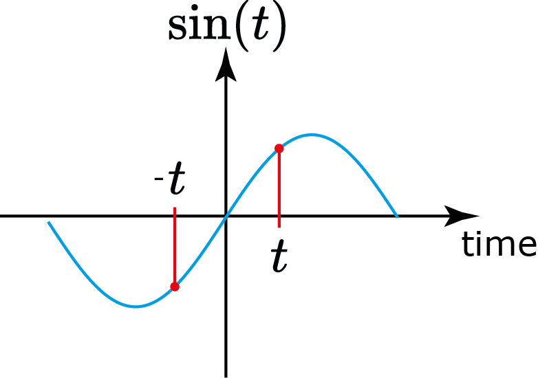 $$ g(t)=-g(-t),\quad \forall t\in\R $$Sinal ímpar: