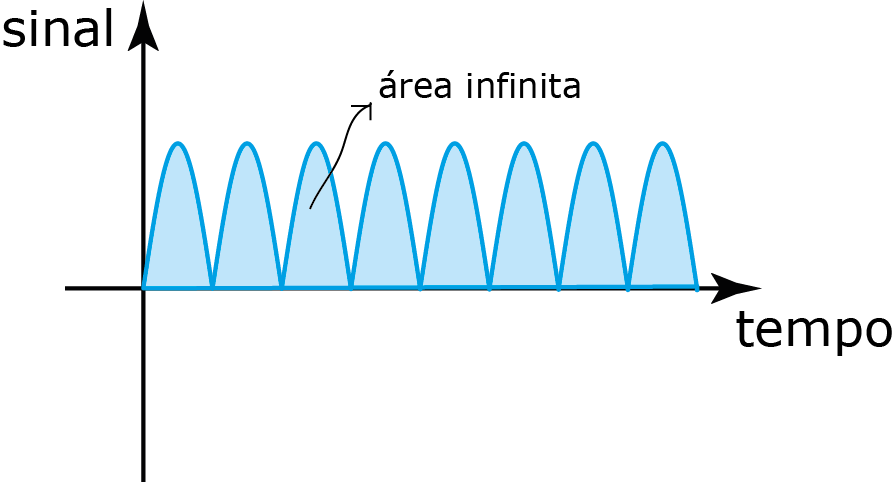 $$\begin{equation} E=\int_{-\infty}^\infty g(t)^2dt \end{equation}$$ $$\begin{equation} P_\text{med}= \lim_{\tau\to\infty} \frac{1}{2\tau}\int_{-\tau}^\tau g(t)^2dt \end{equation}$$Sinal de energia não pode ser sinal de potência e vice-versa