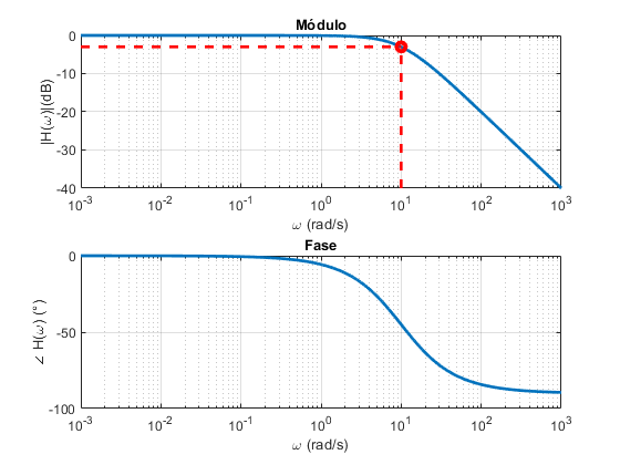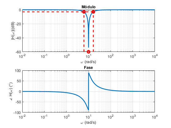 Meia-potência $$ |H(B)|_{dB}=20\log_{10}(\frac{1}{\sqrt{2}})\approx -3dB $$