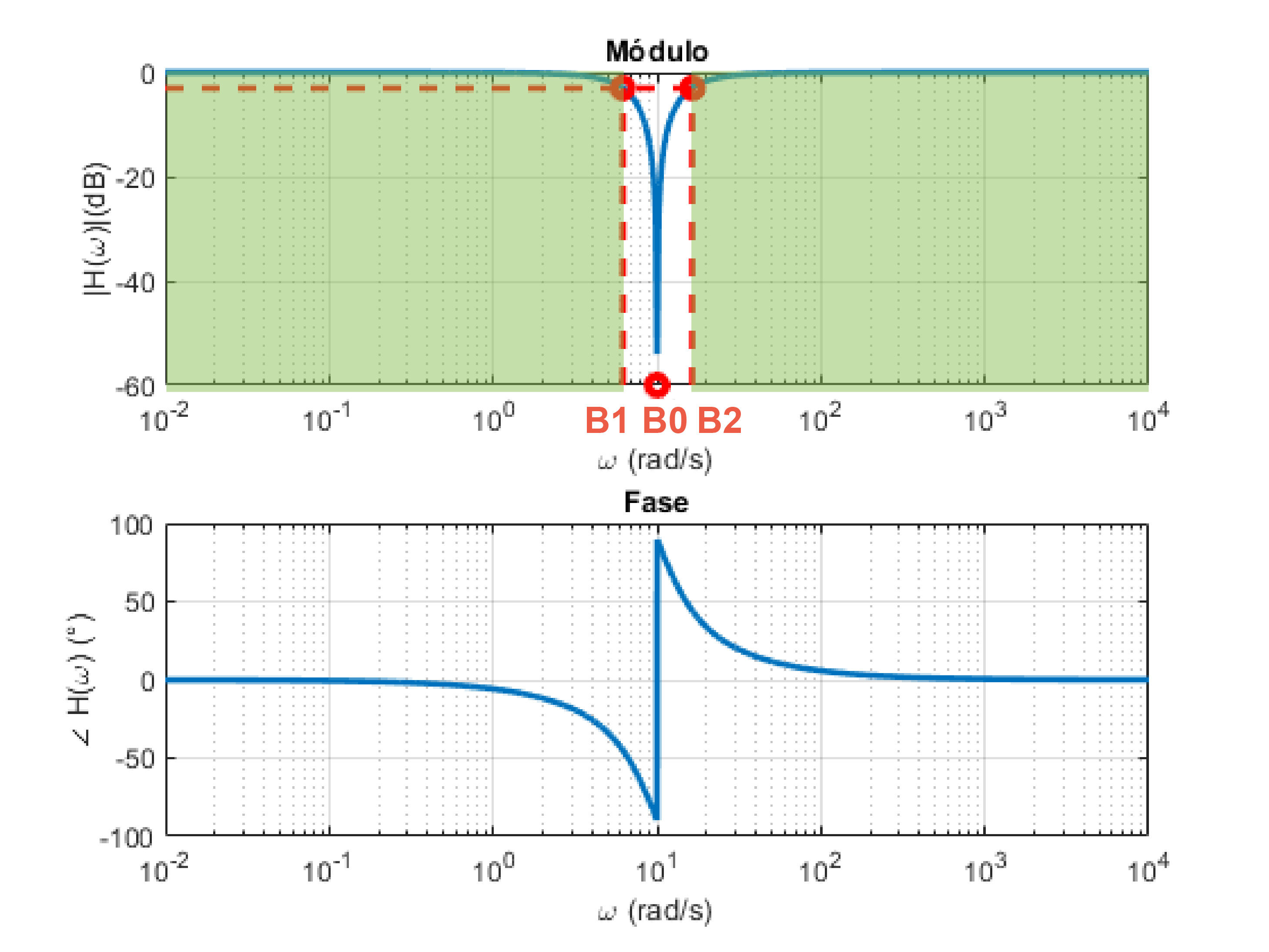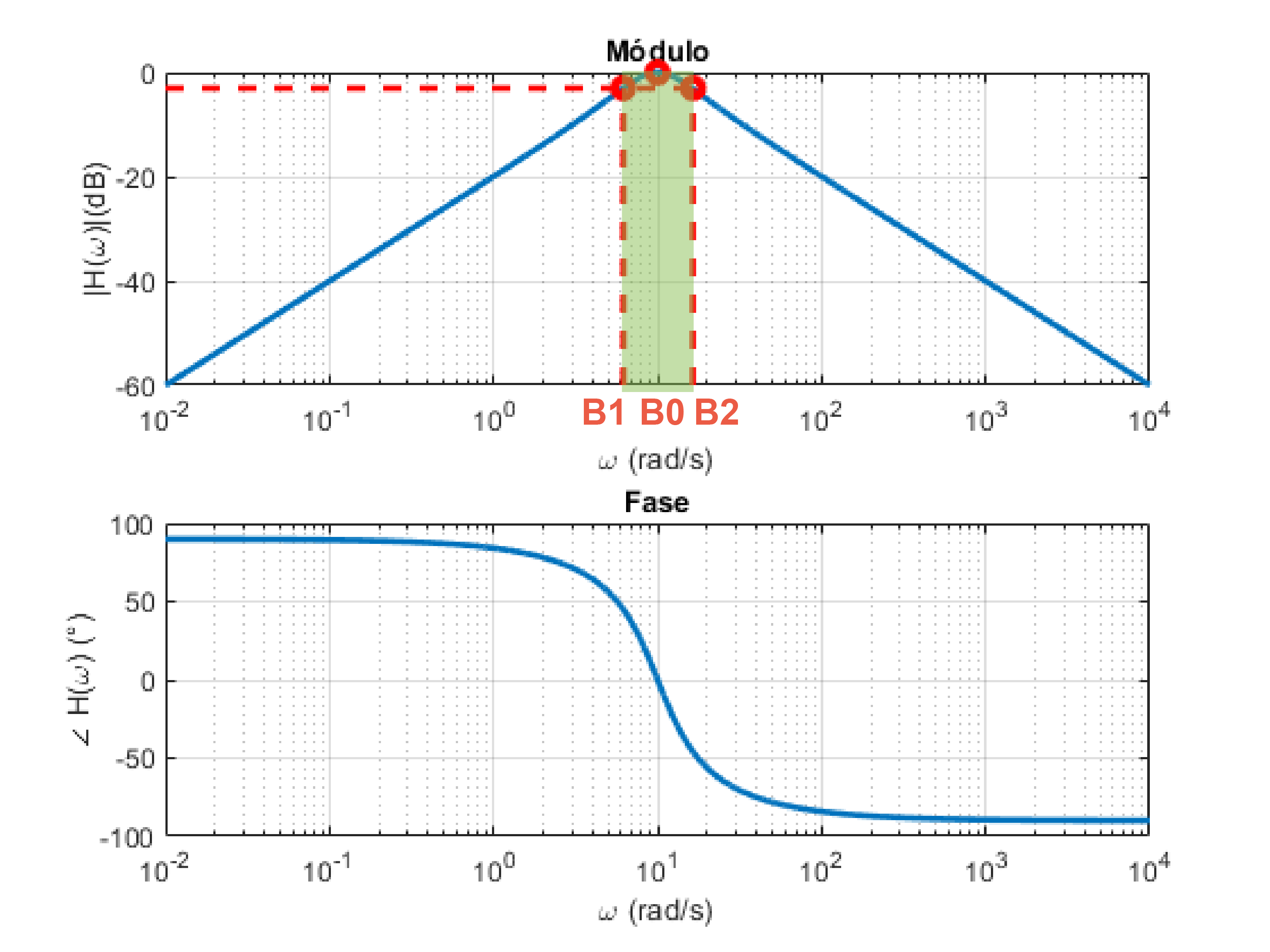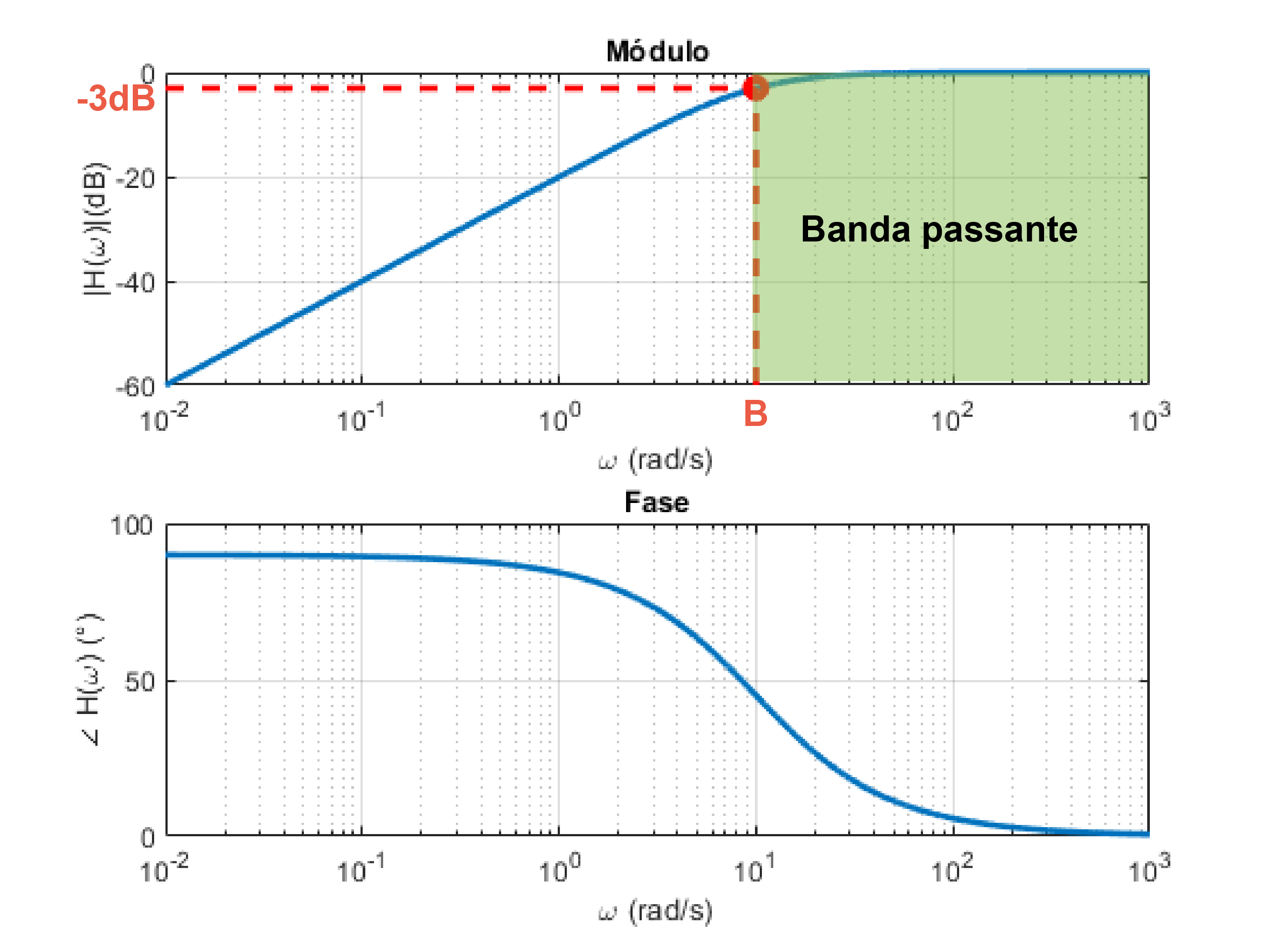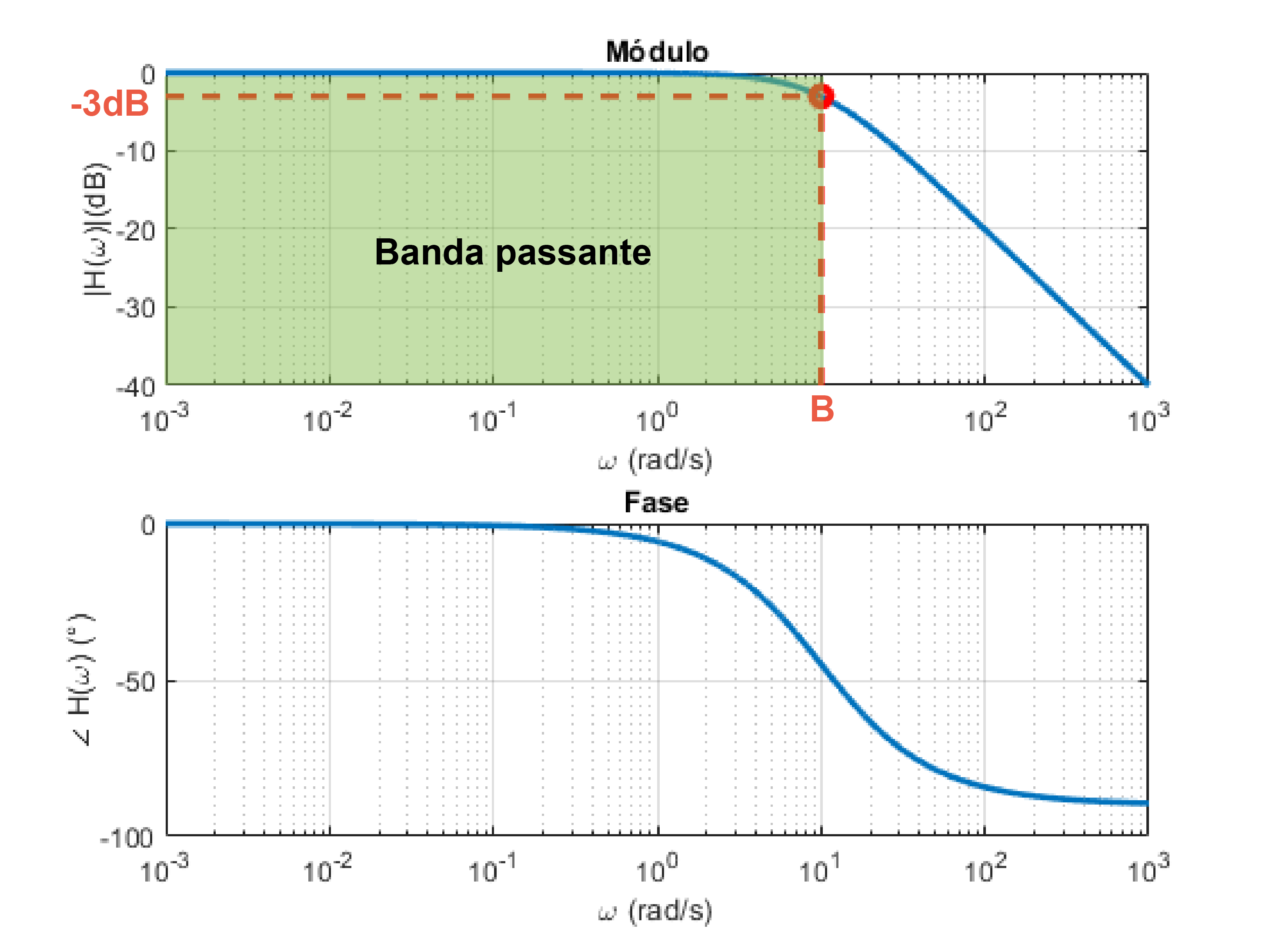 $\Rightarrow B$ é a frequência de corte do filtro.